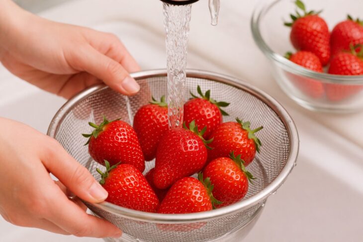 日本のイチゴは安全ですが、流水で軽く洗うことが公的に推奨されています。